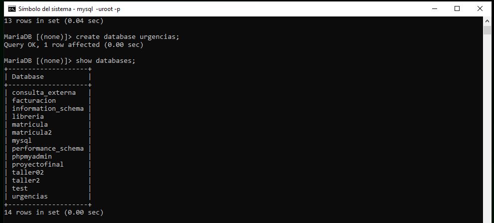 Se crea la base de datos que se llama Urgencias.