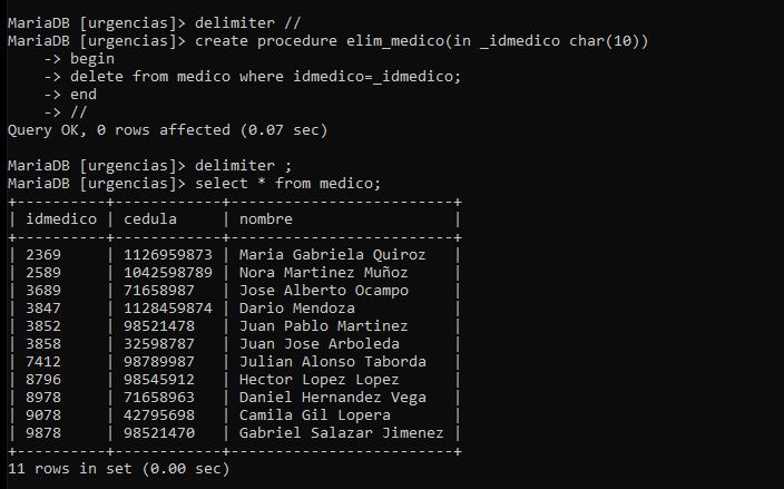 Se crean los procedimientos almacenados: