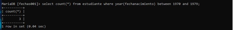 select count(*) from estudiante where year(fechanacimiento) between 1970 and 1979;