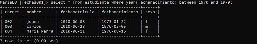 select from estudiante where year(fechanacimiento) between 1970 and 1979;