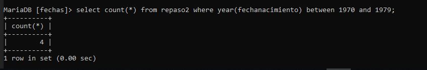 select count(*) from repaso2 where year(fechanacimiento) between 1970 and 1979;