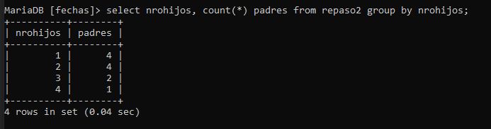 select nrohijos, count(*) padres from repaso2 group by nrohijos;
